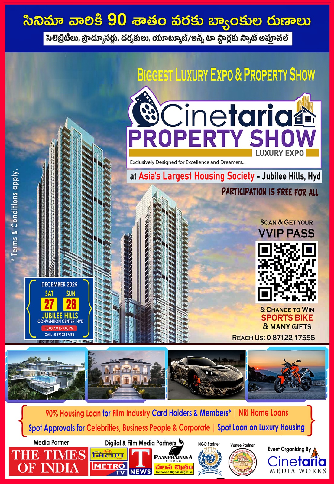 హైదరాబాద్, సింహగర్జన ప్రతినిధి, నవంబర్ 27 : ప్రముఖ బ్రాండింగ్ సంస్థ సినెటేరియా మీడియా వర్క్స్ సినీ పరిశ్రమ మరియు వ్యాపారస్తులకోసం ప్రత్యేకంగా “సినెటేరియా మెగా రియల్…